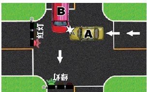 红灯亮时,继续通行的,上图均为A车全责